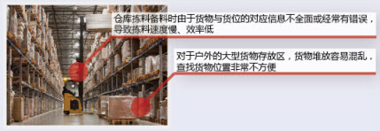 对于户外的大型货物存放区,货物堆放容易混乱,查找货物位置非常不方便;