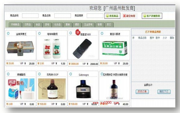 顾客通过盛高官网上网打开盛高软件提供的操作登陆页面,输入预留的手机号码与密码,进入Web订单页面,顾客可通过图文页面查找货品,也可以通过输入条码货号、商品名称的简拼等方式查找货品,选择货品后,输入产品数量确认订单后,系统后台即可实时查看顾客网络订单,核对网络订后转成销售订单,即可对订单进行处理,出正式销售单后由仓库准备货品。