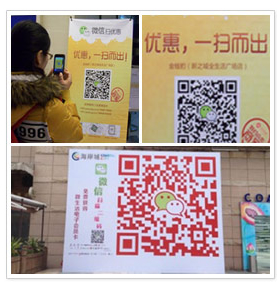 线下商家深圳海岸城、金钱豹全国连锁店,将微信二维码发布在自己的店门前。